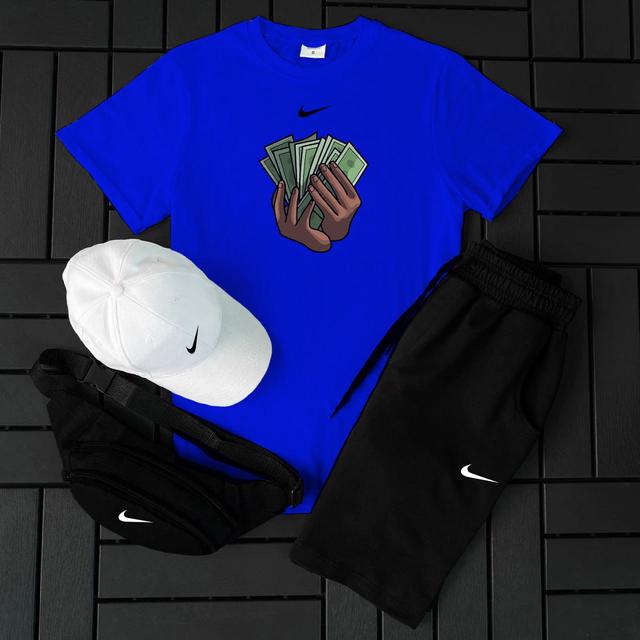 Чоловічий комплект літній Футболка + Шорти + Кепка + Бананка Сумка Nike Cash синій