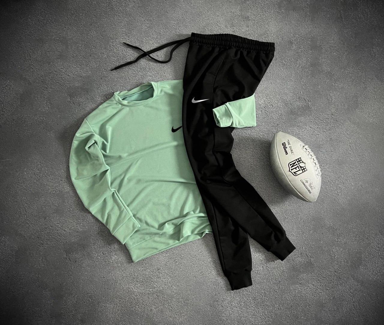 Сортивний костюм чоловічий Nike кофта і штани весняний осінній літній найк фісташковий-чорний